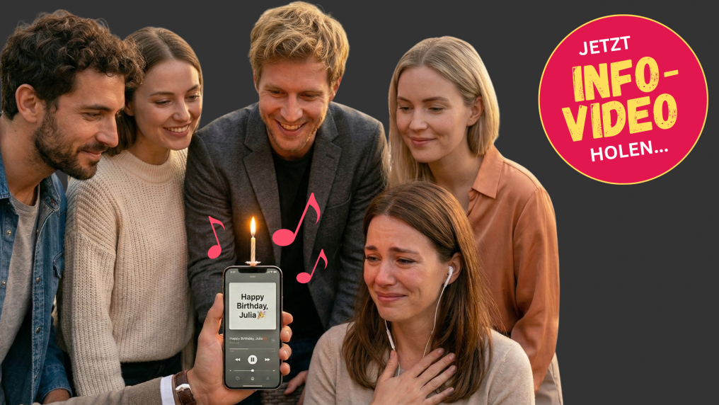 In diesem Info-Video zeige ich dir ebenfalls, wie du einfach eine individuelle und persönliche Grußkarte erstellst, um dein Songeschenk perfekt zu übermitteln.